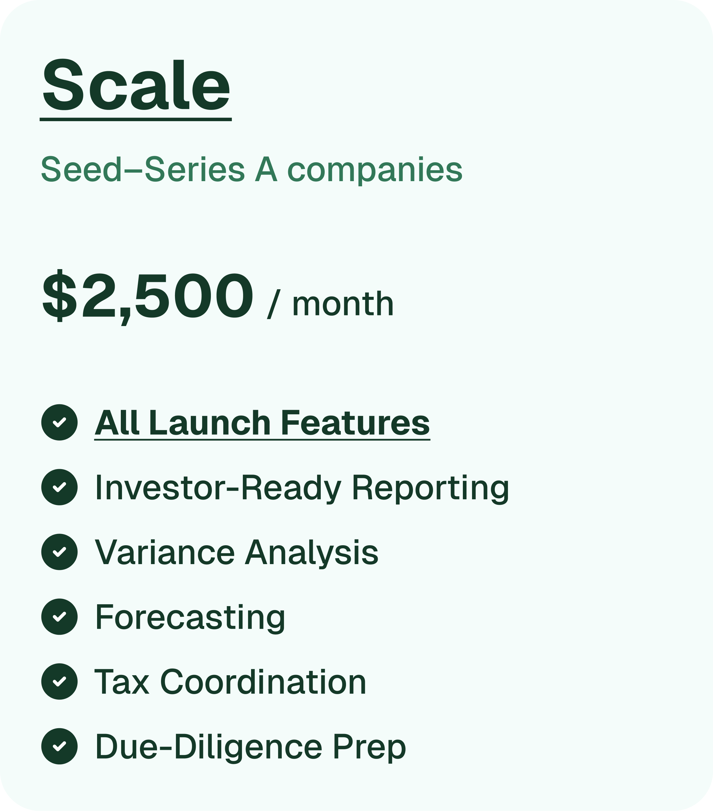 Monthly closes, forecasts, and dashboards your investors will actually understand.